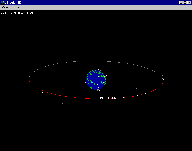 Cette image montre J-Track 3D, une visualisation interactive de suivi de satellite créée par le Laboratoire des Opérations de Mission au Centre Spatial Marshall de la NASA. |