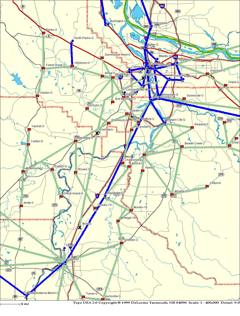 Carte détaillée des réseaux de fibres optiques dans la zone métropolitaine de l'Oregon, aux Etats-Unis.Une série de cartes est disponible pour l'ensemble de l'état, produites par le Département de Développement Economique et Communautaire. |